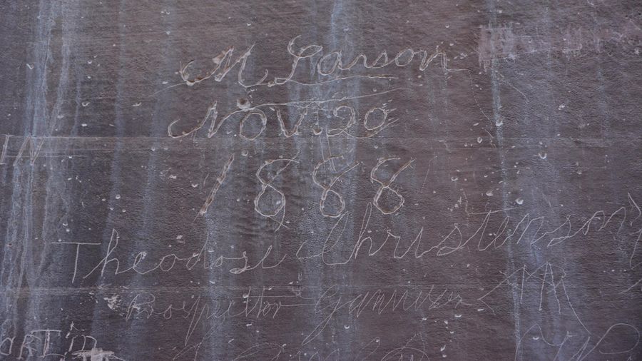 A narrow canyon at the end of the Scenic Drive with pioneer inscriptions and natural water tanks. The kind of slot canyon experience Zion's crowds have overrun.