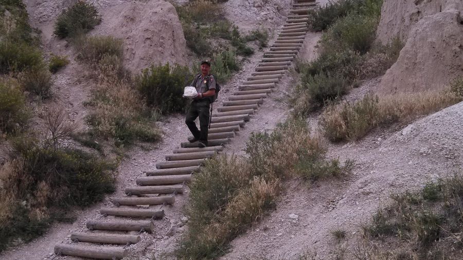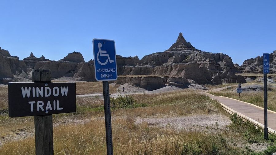 A 0.75-mile round trip through a natural opening in the Badlands Wall. Boardwalk to start, then dirt path into a surreal landscape of eroded spires. The short version turns around at the 'door'; the full trail continues into the formations.