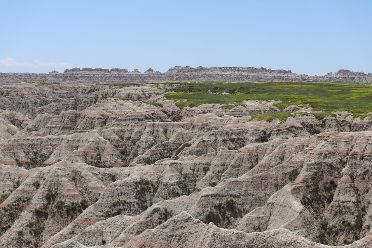 Your first dramatic view. Pull into the lot, walk to the overlook, take photos. The Badlands Wall stretches in both directions.
