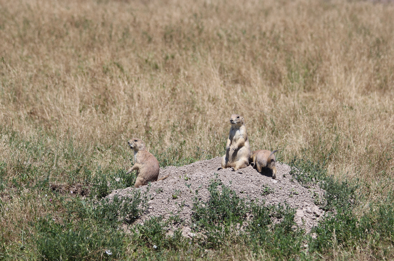 A colony of black-tailed prairie dogs along Sage Creek Rim Road. Watch them pop up and bark. Kids love it.