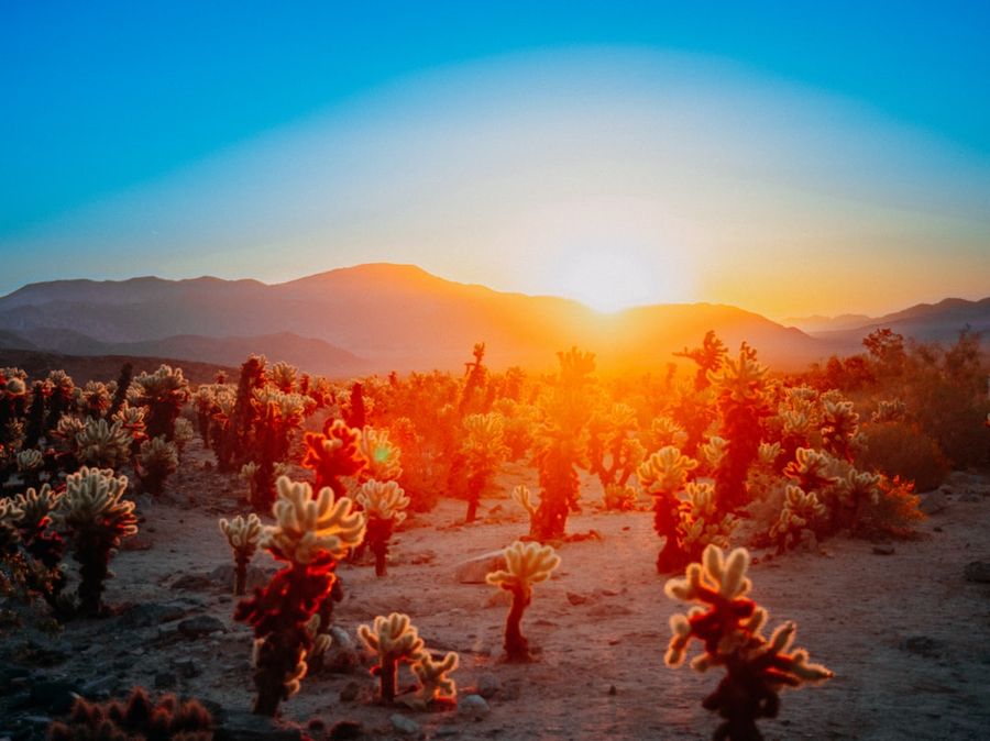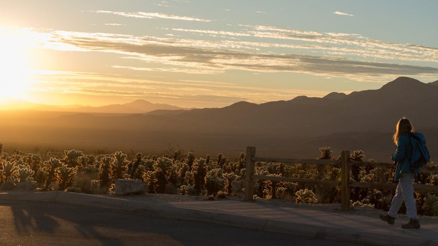 A dense concentration of teddy bear cholla cactus in a desert basin. A short boardwalk loop winds through thousands of backlit cholla at sunset. The spines glow golden. It is not the Joshua trees, but it is uniquely beautiful and accessible from the south entrance.