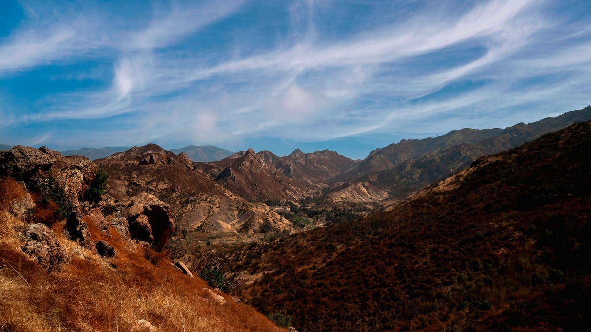 Los Angeles sprawls to the edge of these mountains and stops. Griffith Observatory sits on the eastern end; Point Mugu marks the western limit. In between: 500 miles of trails through chaparral-covered ridges, oak woodlands, and coastal canyons. Malibu Creek State Park has the rock pool where M*A*S*H was filmed. Topanga State Park offers city views from 2,000 feet. The whole recreation area sits inside the LA metro, accessible by freeway, hikeable in an afternoon, back to civilization by sunset.